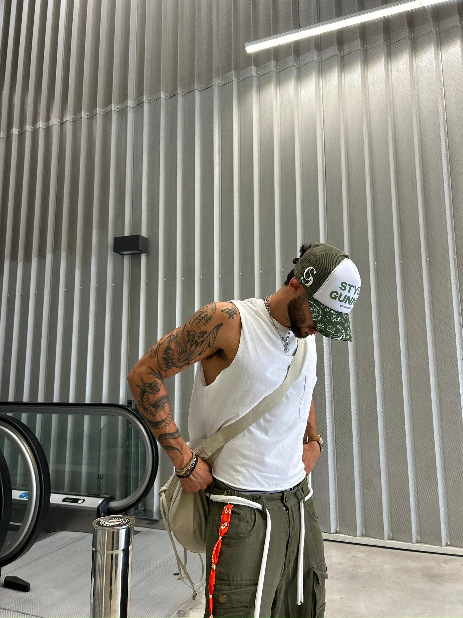 After 4 months, we are back with this awesome cap, inspired by the song “Move” by KeineMusik, which marked the beginning of our summer. As you can see, apart from being a work of art, this cap is distinguished by the bandana on the front, along with the addition of accessories that represent the fusion of jewelry with streetwear, a seal that defines us. The ribbon is not only a visual element; it has several uses since it can be removed and put on, allowing you to use it to decorate bags, pants or whatever your creativity decides. It probably won’t appeal to everyone, but that’s exactly what we’re looking for.