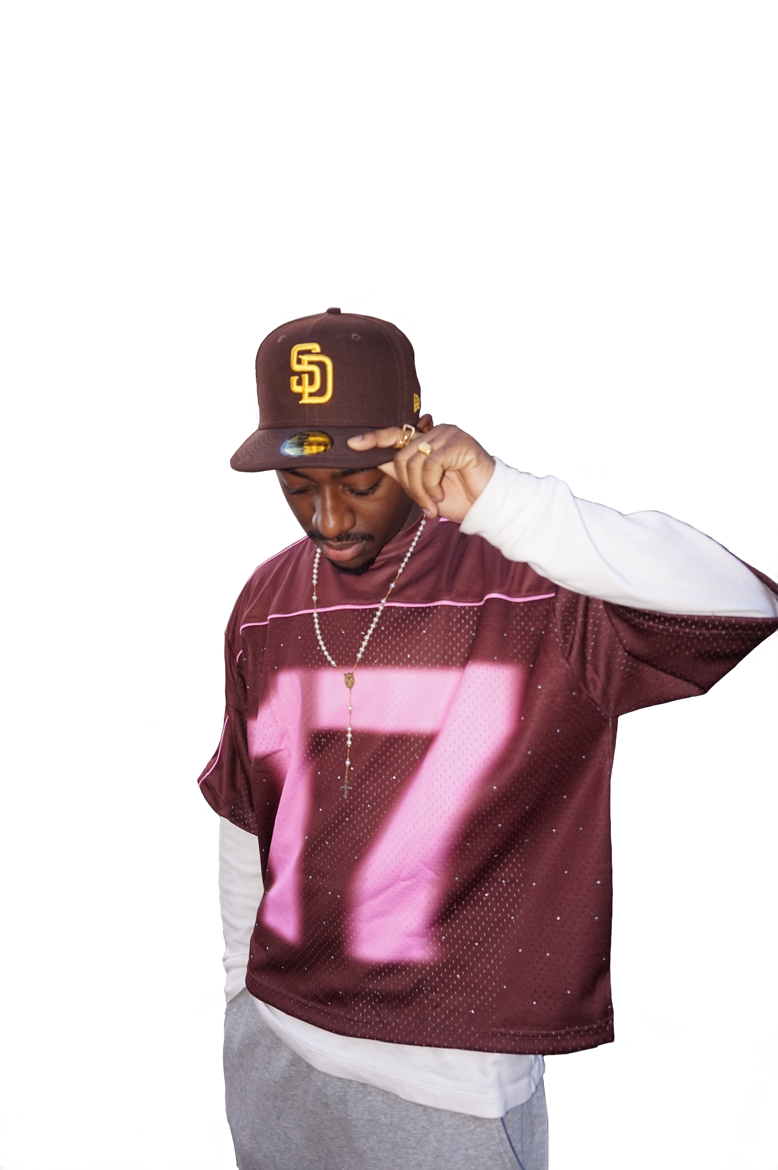 Covered in rhinestones, with the 17 and Seventeen G’s name blazing in neon pink so it never goes unnoticed.